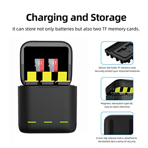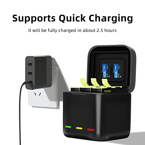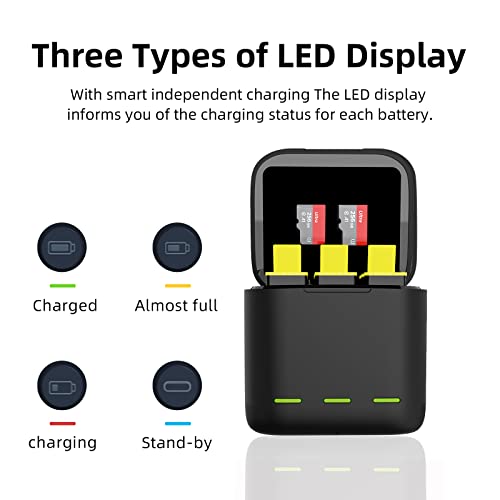 AFAITH Hero 10/ Hero 9 Ladegerät Akku Kit 2X 1750mAh Batterie Und Type C 3-Kanal Ladegerät für GoPro Hero 9 Black/Hero 10 Black