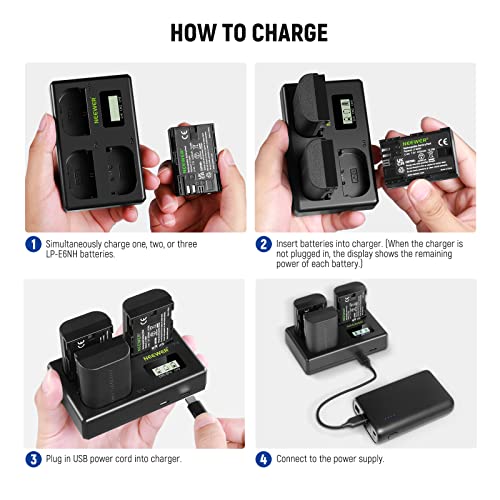 Specification: NEEWER LP-E6NH Ersatzakku und USB-Ladegerät Set, 3er-Pack 2250mAh Ersatz für LP-E6NH Akku und Dreifach-USB-Ladegerät Kompatibel mit Canon EOS R5 R6 5D 5DS 6D Mark II 77D 80D 90D EOS R