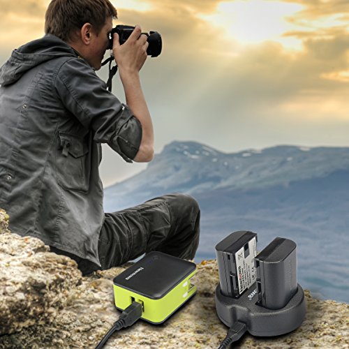 Genaue Kapazität: Jeder Akku verfügt über 7,2V, 1800mAh, verdreifacht die Laufzeit Ihrer Kamera mit einem kompletten Backup-Paket, das zwei Ersatzakkus und ein Dual-Akkuladegerät enthält.