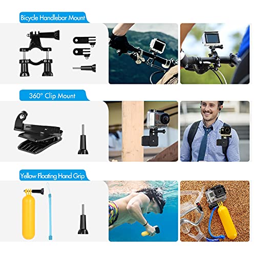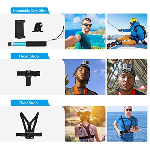 【60-in-1 Universal Action-Kamera Zubehör Kit】kompatibel mit den meisten Action-Kameras auf dem Markt, kann dieses Action-Kamera Zubehör Kit Ihnen helfen, erstaunliche Momente festzuhalten und Ihrer Action-Kamera den besten Schutz zu bieten, perfekt für Vlog, Skifahren, Radfahren, Skateboarden und andere Outdoor-Aktivitäten.